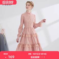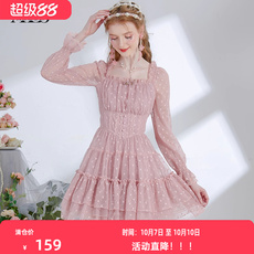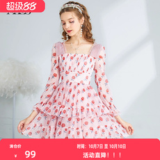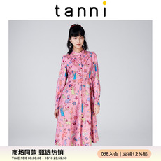 tanni商场同款秋冬粉色连衣裙女长袖法式印花公主裙TK31DR156A