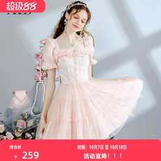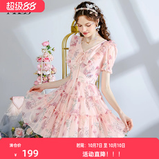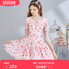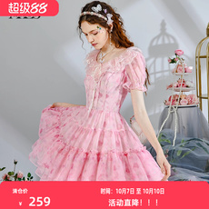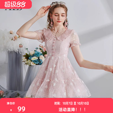 衣纱布菲柔伊甜美少女连衣裙夏装女娃娃领粉色初恋公主裙