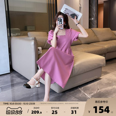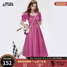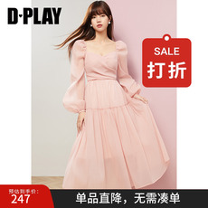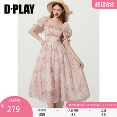 DPLAY夏季公主裙粉色裙连衣裙女方领气质裙子长裙海边度假沙滩裙
