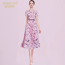 艾丽丝2025夏季新款粉色甜美减龄公主风蛋糕裙中长款印花连衣裙女