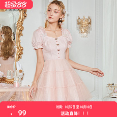 [6折]Sei CarinaY钻扣网纱蝴蝶结公主裙粉色甜美抹胸连衣裙女新款