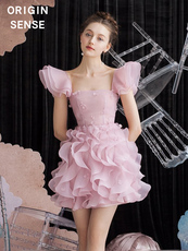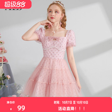欧根纱仙气公主芭比粉色蓬蓬裙赫本风小个子超短小礼服连衣裙