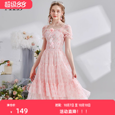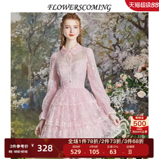 花儿开了2025秋季新款粉色蕾丝网纱连衣裙女法式甜美公主风蛋糕裙