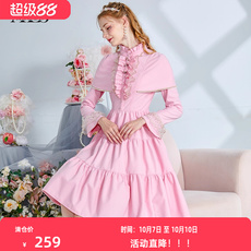 艾丽丝2024冬季新款甜美斗篷蕾丝中长款连衣裙优雅刺绣粉色公主裙