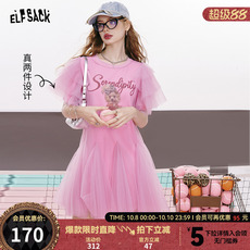 【叛逆甜心】妖精的口袋粉色网纱印花t恤连衣裙女2025夏新公主裙