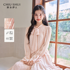 【千金风】秋水伊人V领粉色连衣裙女公主裙2025秋装新款波点裙子