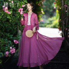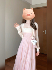 现货【石蕊】文艺浪漫吊带连衣裙女长袖开衫外搭夏季汉服粉色套装