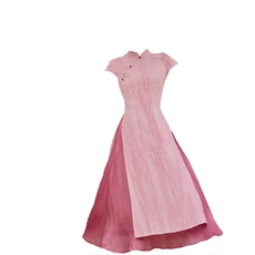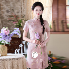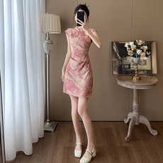 粉色新中式减龄改良旗袍短裙夏季新款小个子高级感国风气质连衣裙