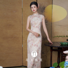 《闻花》无袖粉色旗袍2025夏季新中式温婉气质高级少女连衣裙订婚