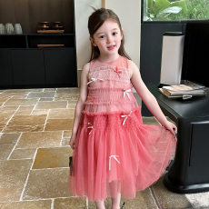 栀了成长记童装女童粉色甜美网纱背心裙夏季儿童女孩蛋糕裙连衣裙