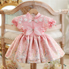 粉色周岁礼服女宝宝婴儿新中式国风满月百天生日宴抓周公主裙春季