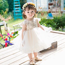 周岁礼服粉色公主裙女童宝宝女孩演出服薄轻奢儿童婚纱蓬蓬裙