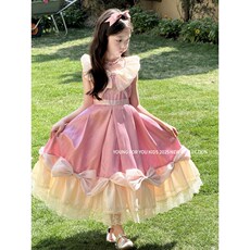 女童中大童生日聚会长裙礼服粉色公主裙主持人婚礼花童蓬蓬纱裙