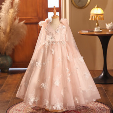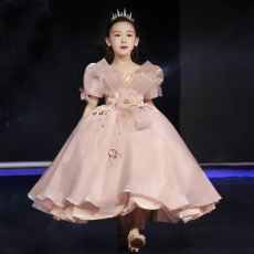 高端女童礼服公主裙粉色生日宴会千金风长裙主持人走秀演出礼服裙