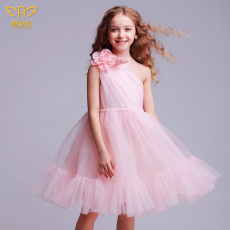 儿童生日礼服女童粉色立体花朵公主裙洋气小女孩高端主持人蓬蓬裙