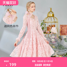 浪漫辛德瑞拉公主风连衣裙 层叠重工长袖法式田园风蓝粉色木耳边