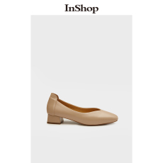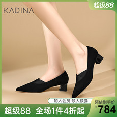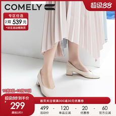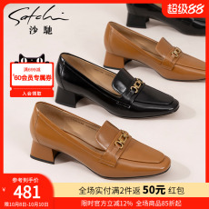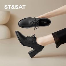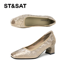 千百度秋季新款女鞋通勤正装浅口粗跟真皮中跟气质法式单鞋