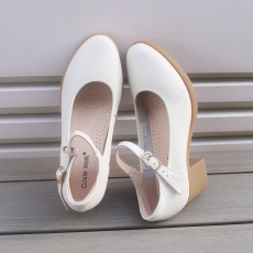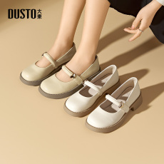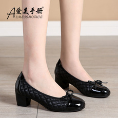 奥古斯都真皮圆头浅口粗跟中跟单鞋女时尚百搭玛丽珍鞋001-18