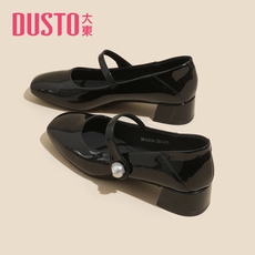 大东黑色玛丽珍单鞋女2025新款秋季甜美浅口鞋法式中跟粗跟小皮鞋