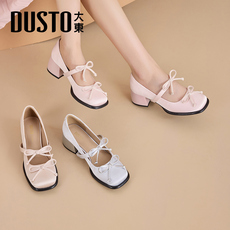 大东玛丽珍鞋女鞋2025秋季新款粗跟中跟魔术贴圆头浅口单鞋C0720
