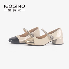 佰诗奴拼色玛丽珍女鞋2024年秋季新款中跟复古小皮鞋粗跟单鞋女潮