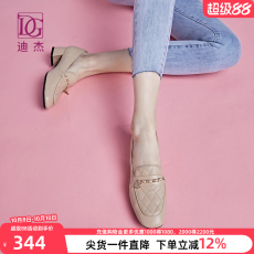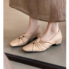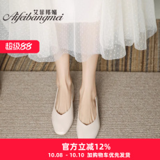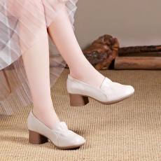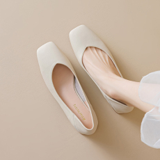 大东米色单鞋女2025新款秋季粗跟中跟软底软皮瓢鞋浅口鞋通勤女鞋