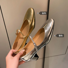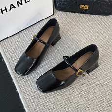 法式百搭玛丽珍高跟鞋女2025年新款粗跟一字带单鞋中跟方头奶奶鞋