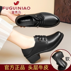 富贵鸟女鞋正品小皮鞋真皮单鞋中跟职业正装系带粗跟牛皮工作鞋子