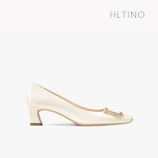 2025春夏新款商场同款优雅饰扣真皮方头浅口中跟粗跟女单鞋40231