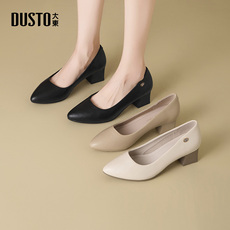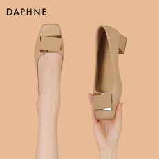 达芙妮真皮单鞋女中跟2025秋季新款方头浅口粗跟超软底配裙子通勤