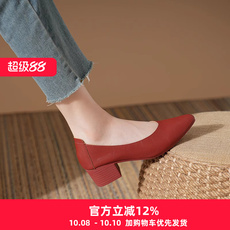 妈妈鞋皮鞋喜婆婆中老年婚宴婚礼红色中跟单鞋女粗跟高跟鞋春秋款