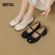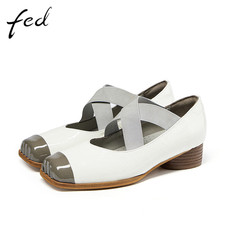 FED羊皮女鞋秋季2024新款方头粗跟单鞋女中跟芭蕾鞋玛丽珍DAR051