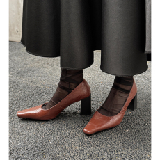 法式高跟鞋女鞋2025夏秋新款粗跟方头浅口单鞋中跟工作鞋妈妈女鞋