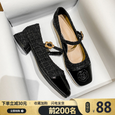 米国外贸新款!法式方头小香风玛丽珍单鞋女粗跟百搭浅口中跟女鞋