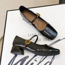 捡漏25早春新款rv粗跟漆皮方扣女单鞋OL职场通勤中跟大象灰浅口鞋