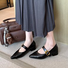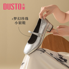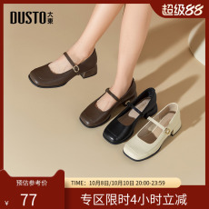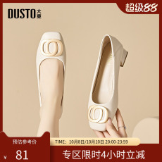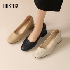 大东通勤鞋女鞋2025秋季新款优雅方扣中跟粗跟配裙子浅口单鞋0077