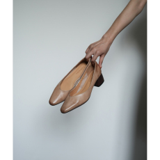 羊皮裸色粗跟尖头中跟5cm高跟鞋女7厘米2025春秋款软皮配裙子单鞋