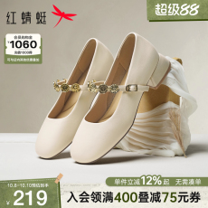 大东红色鞋子法式红鞋玛丽珍鞋女2025新款粗跟中跟单鞋秋季小皮鞋