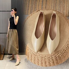 真皮时尚单鞋女平底2025新款鞋子女软底中跟女鞋春秋粗跟百搭皮鞋