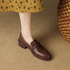 5228春季新款女鞋单鞋英伦风皮鞋豆豆鞋复古粗跟软底中跟低跟女鞋