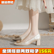 法式晚风粗跟单鞋女秋2025新款浅口气质温柔鞋中跟大码女鞋41到43