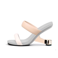 玮保/真皮增高厚底凉拖鞋女 2025夏新款粗跟防水台外穿休闲半拖鞋