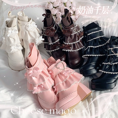 misili 系带马丁靴黑色粗跟短靴秋冬季新款8.5cm高跟鞋厚底女靴子