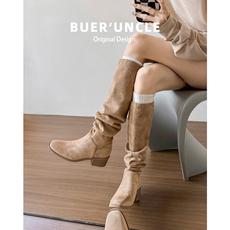 法式粗跟绒面骑士靴堆堆长靴女鞋2025新款秋冬季瘦瘦高筒长筒靴子