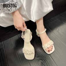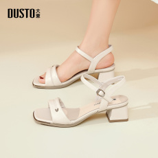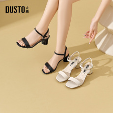 大东女凉鞋2025夏季新款粗跟高跟时尚舒适百搭圆头一字带女凉鞋女