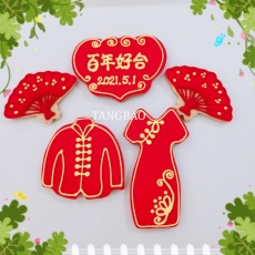 旗袍翻糖饼干中式婚礼手工定制结婚喜饼甜品台伴手礼