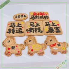 新年马年黄油饼干创意手工曲奇节日祝福公司学校活动零食礼物
