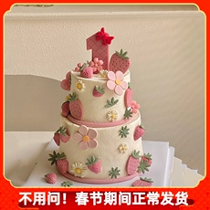 简约翻糖花朵草莓蛋糕装饰宝宝周岁一岁啦生日装扮蝴蝶结花瓣模具