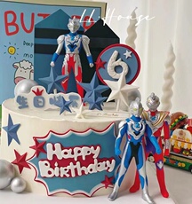 烘焙蛋糕装饰奥特主题高楼房屋超人仿翻糖宝宝男孩生日甜品台摆件