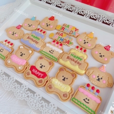 卡通小熊小猫小狗生日蛋糕造型糖霜饼干生日礼物甜品摆台